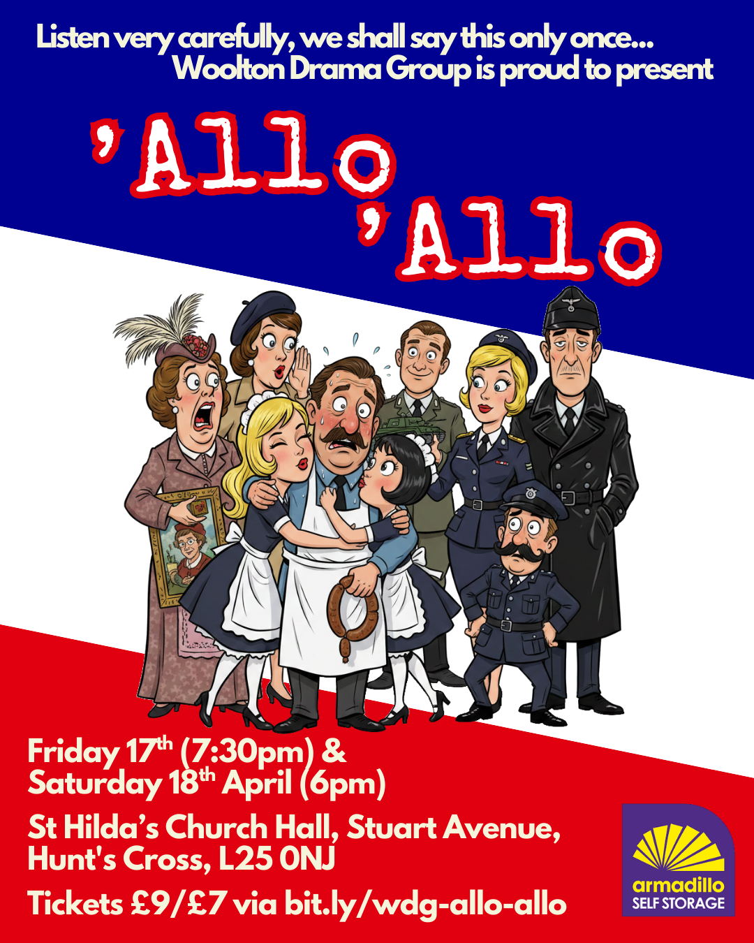 Listen very carefully, we shall say this only once: Woolton Drama Group is proud to present 'Allo 'Allo!